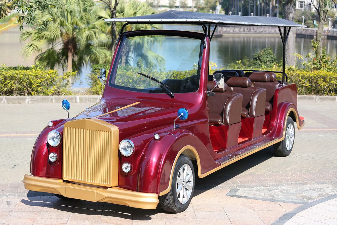 خودروی کلاسیک برقی وینتیج قرمز 8 نفره با تاییدیه CE، باتری 72 ولت تروجان، اتوبوس کلاسیک برقی